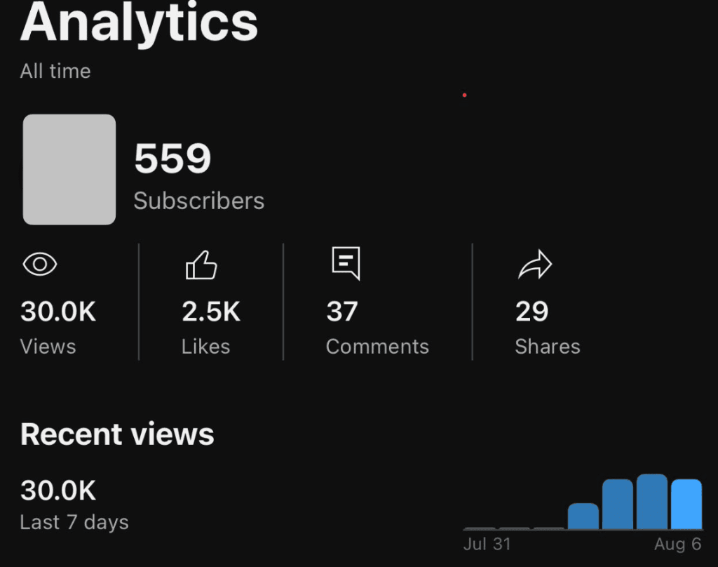 Using the same faceless AI-generated video format and never having to show his face or voice, in less than 3 weeks, his results were astonishing: