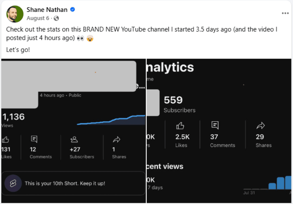 Everything you see is real. Pulled directly from Shane’s YouTube dashboard.